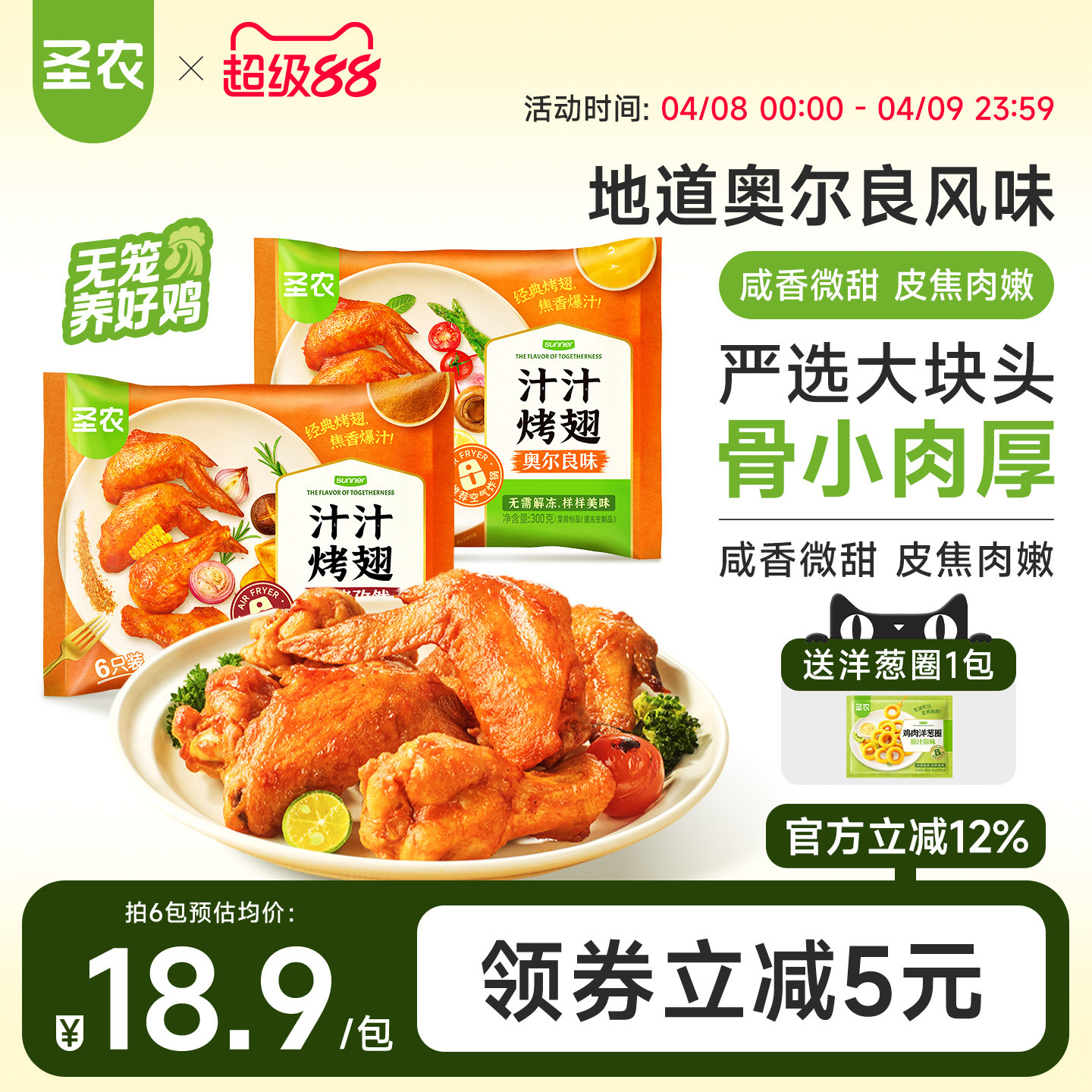 圣农汁汁烤翅300g奥尔良孜然味空气炸锅半成品冷冻鸡翅聚餐美食