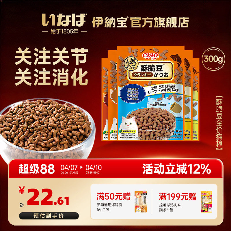伊纳宝成猫粮鲣鱼肉全价猫粮猫咪专用鸡肉鱼肉猫粮酥脆豆ciao营养