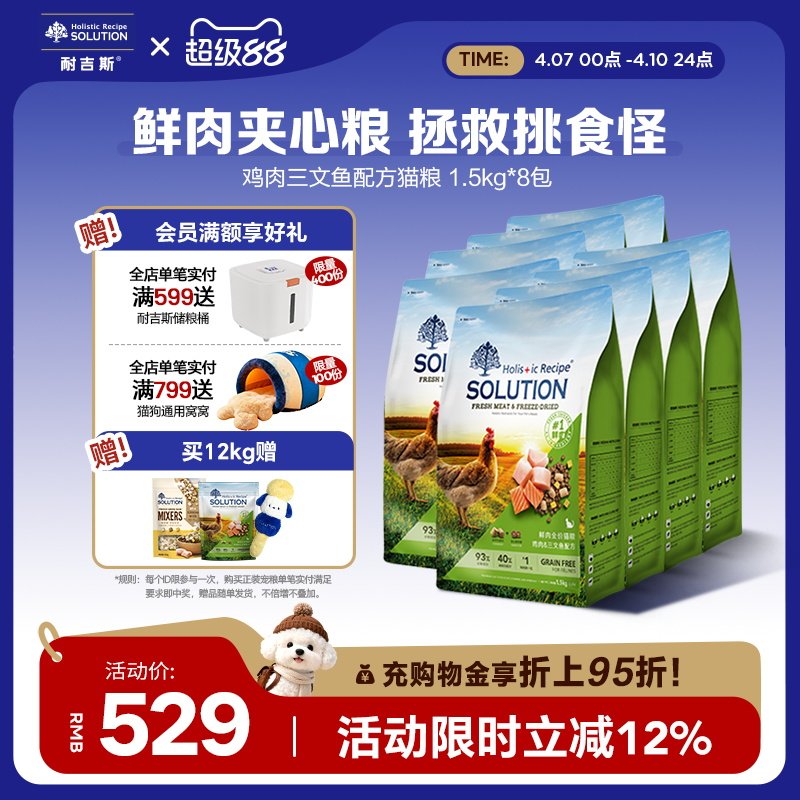 耐吉斯全期鲜肉猫粮鸡肉三文鱼鸡肉味成猫幼猫12kg官方旗舰店正品