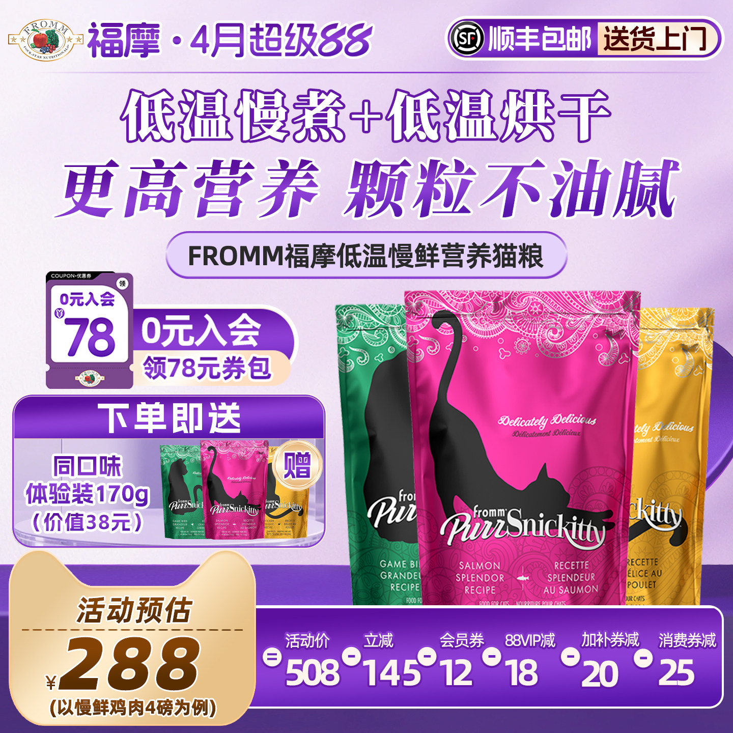 【122周年献礼新品】Fromm福摩低温慢煮烘焙高营养猎鸟鱼鸡肉猫粮