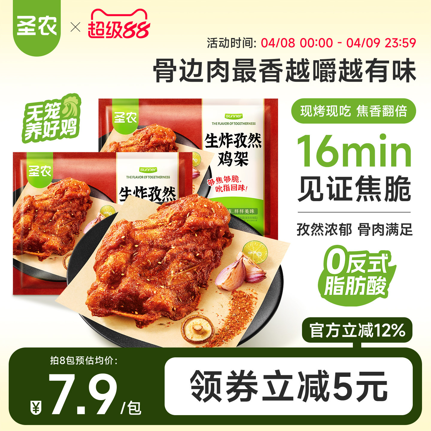 圣农孜然鸡架160g*6包/8包免腌鸡骨架半成品空气炸锅夜宵下酒菜