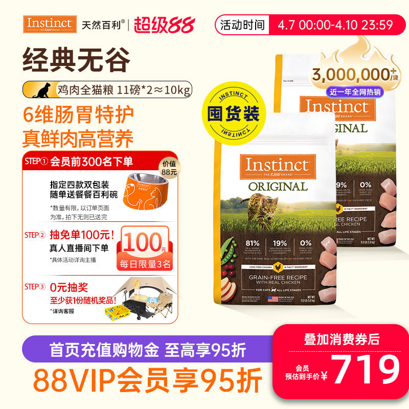 [囤货装]Instinct天然百利猫粮进口猫粮无谷系列鸡肉猫粮5kg*2