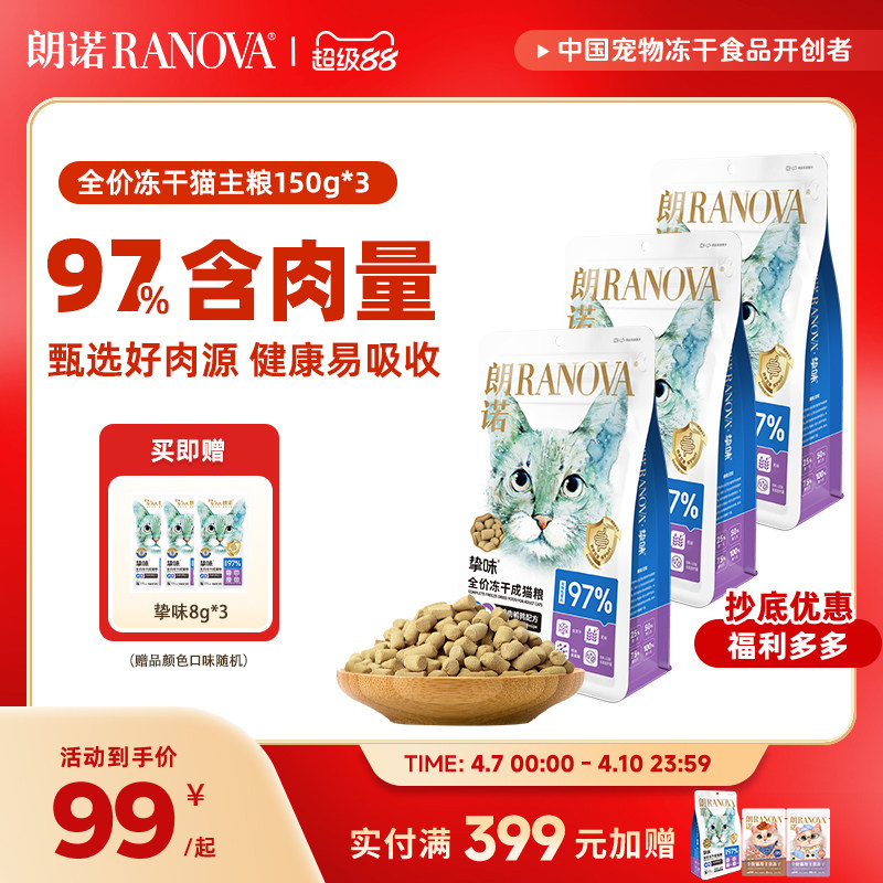 朗诺主食冻干猫粮生骨肉猫主粮鸡肉三文鱼成猫150g*3+8g*3