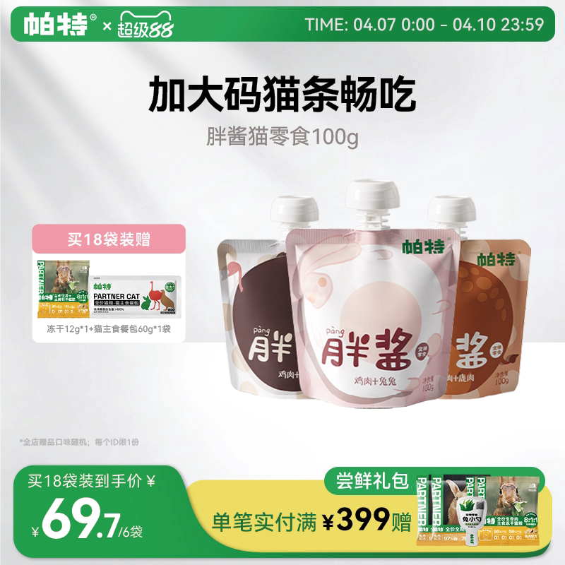 帕特胖酱猫咪零食补水猫条非主食鸡肉互动咕噜酱成幼猫罐头湿粮包
