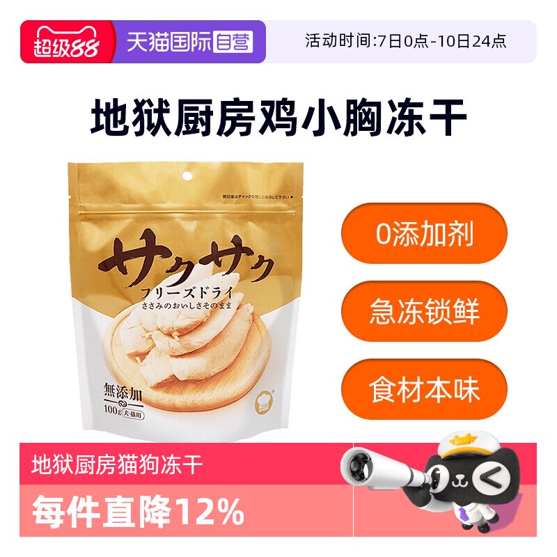 【自营】地狱厨房鸡小胸冻干鳕鱼零食鸡胸肉猫咪狗鸡鸭肉大满足