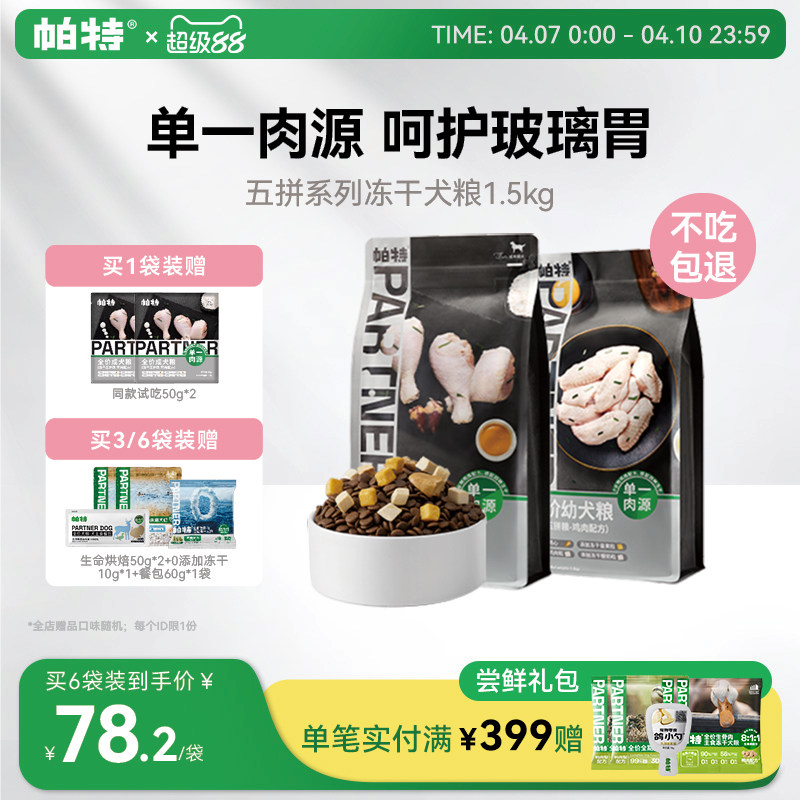 帕特五拼狗粮冻干蛋黄鸡心鸡肉酸奶干粮成幼犬小型犬全价主粮犬粮