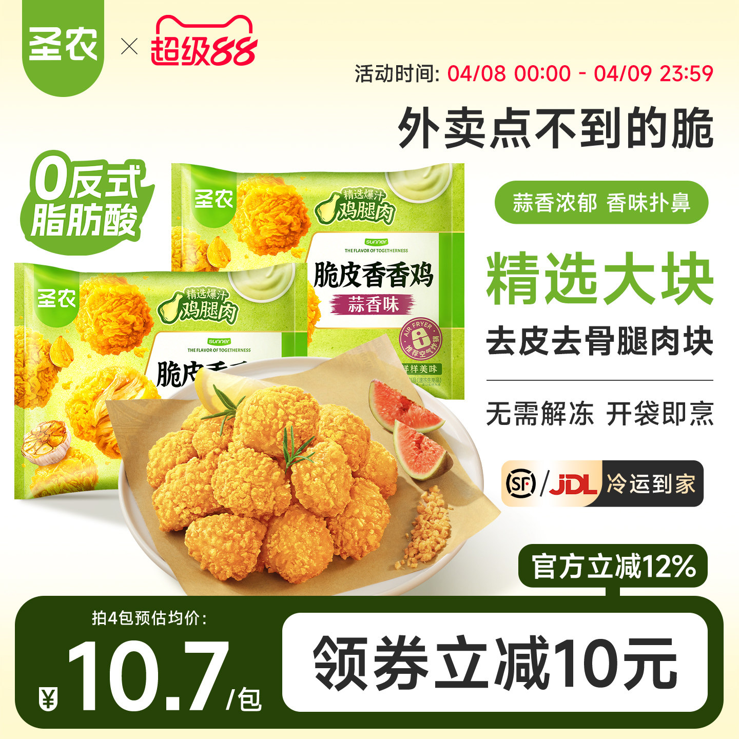圣农脆皮香香鸡220g*4包蒜香味裹粉鸡腿肉块空气炸锅免油炸半成品