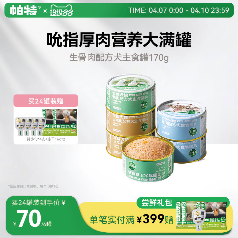 帕特狗罐头狗粮宠物狗狗零食小型犬火鸡鸭肉狗湿粮主食罐头170g*6