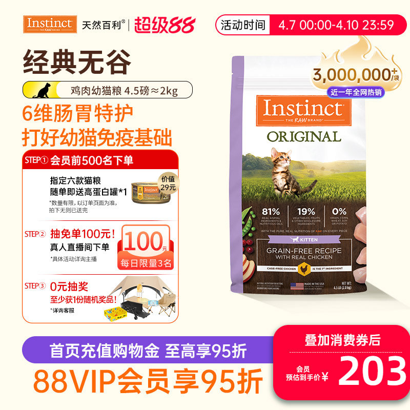 [尝鲜装]Instinct天然百利猫粮进口猫粮无谷系列鸡肉幼猫专用粮