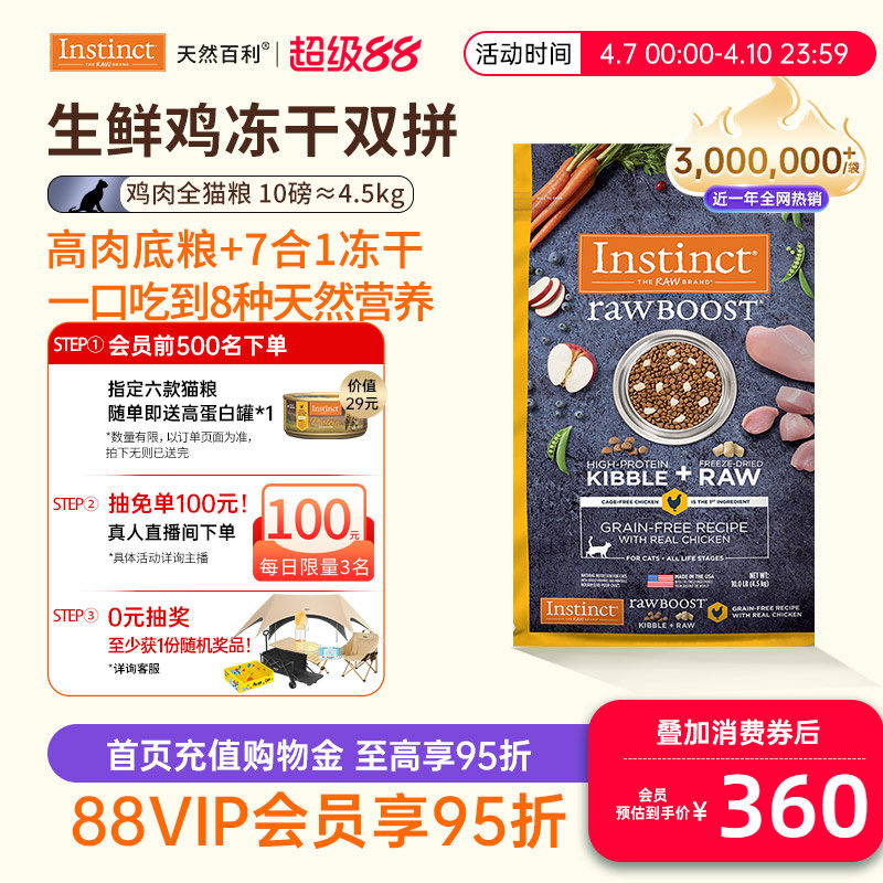 [官方旗舰店]Instinct天然百利猫粮进口双拼冻干生鲜鸡肉猫粮10磅