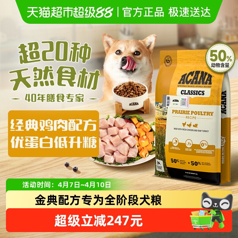 ACANA爱肯拿狗粮成幼犬进口全价经典鸡肉犬粮6kg最近效期26/9/23