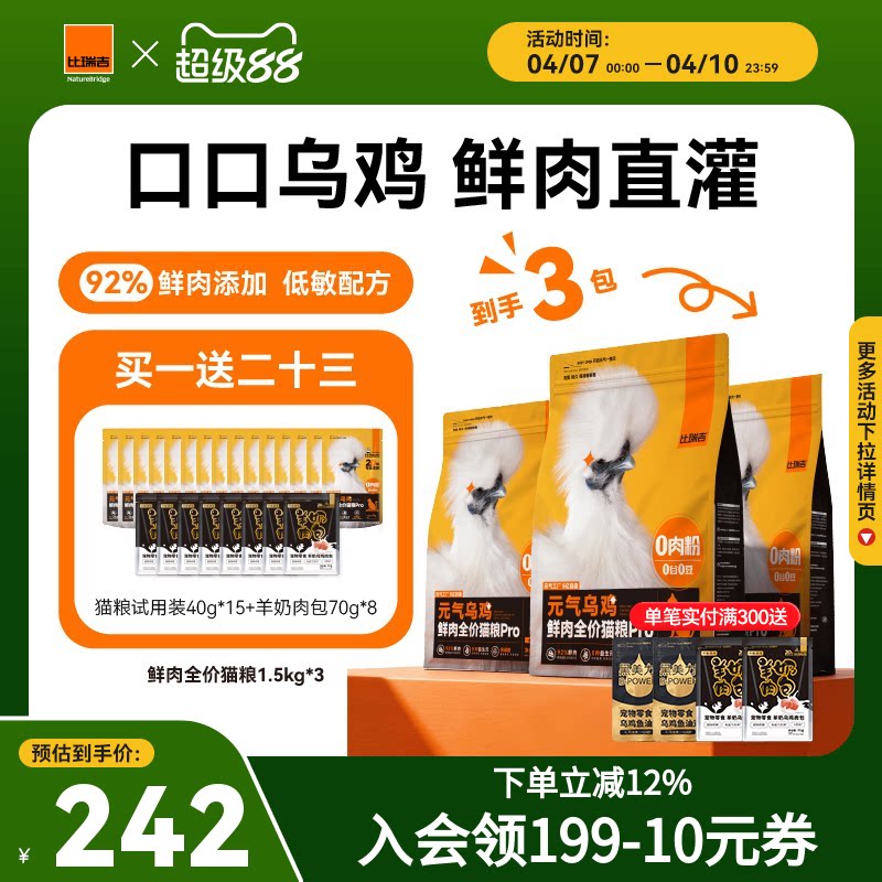 【囤货4.5KG装】比瑞吉元气乌鸡猫粮全价主食高营养美毛官方正品