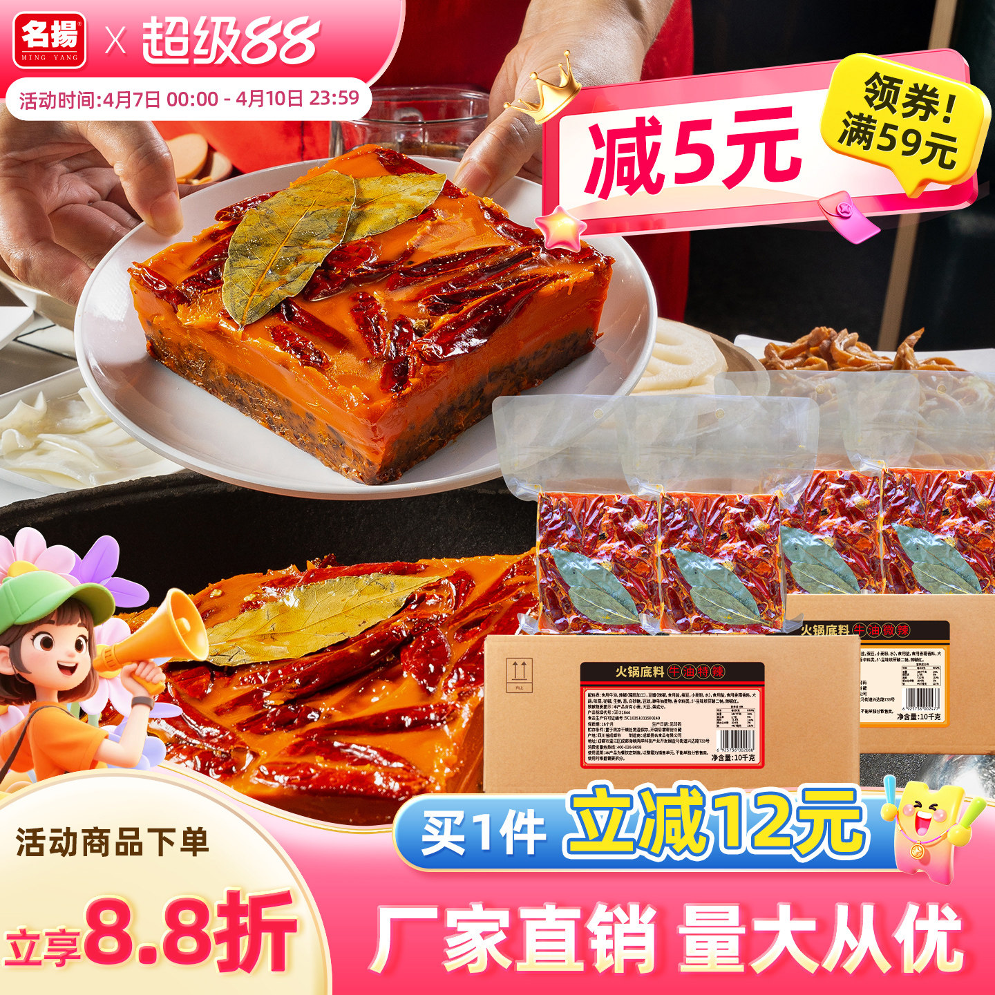名扬厂家餐饮装牛油特辣/微辣火锅底料烧鸡烧鱼调料商用串串冒菜