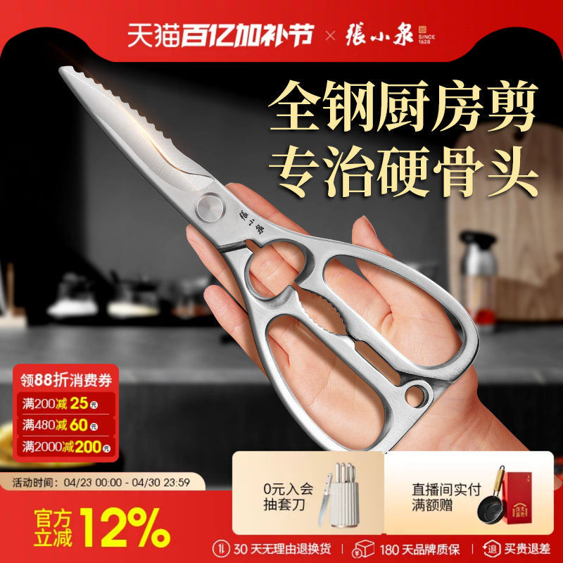 张小泉不锈钢厨房剪刀多功能鸡骨剪刀鸡鸭鹅剪骨刀杀鱼食物剪刀
