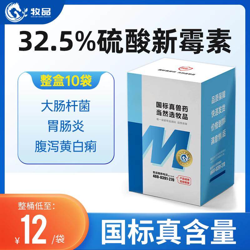 牧品32.5%硫酸新霉素兽用可溶性粉拉稀大肠杆菌止痢猪鸡鸭药正品