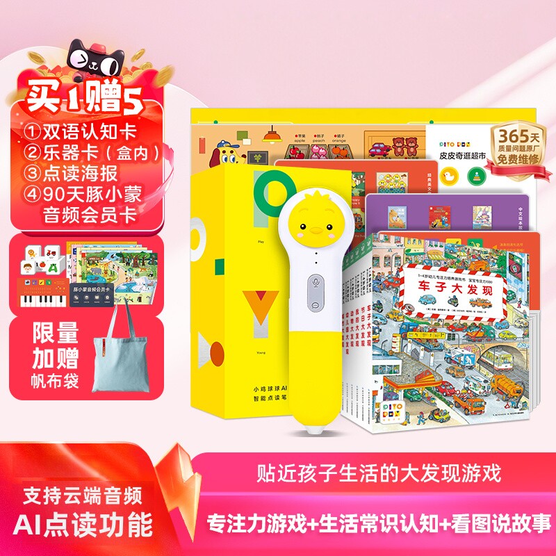 【买1赠4】PIYOPEN小鸡球球32G点读笔AI幼儿专注力1000宝宝纸板书