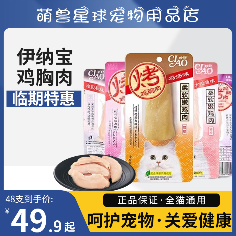 伊纳宝鸡胸肉宠物成幼猫通用烤鸡胸肉猫零食鸡小胸混合口味临期