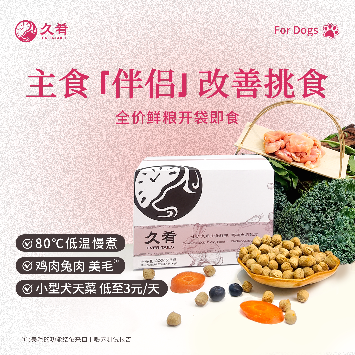 [拌粮搭子美毛]久肴狗狗鲜粮拌饭营养挑食狗全价主食拌餐鸡肉1kg