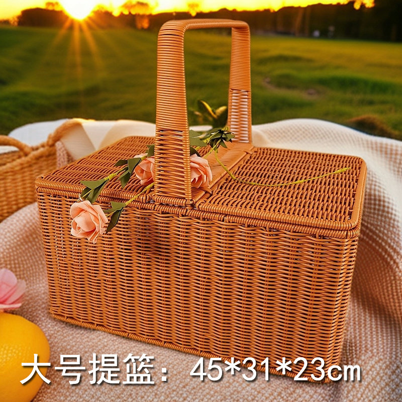 大号手提编篮野餐篮拜拜篮鸡鸭储物新款花篮拍照网红购物篮水果蓝