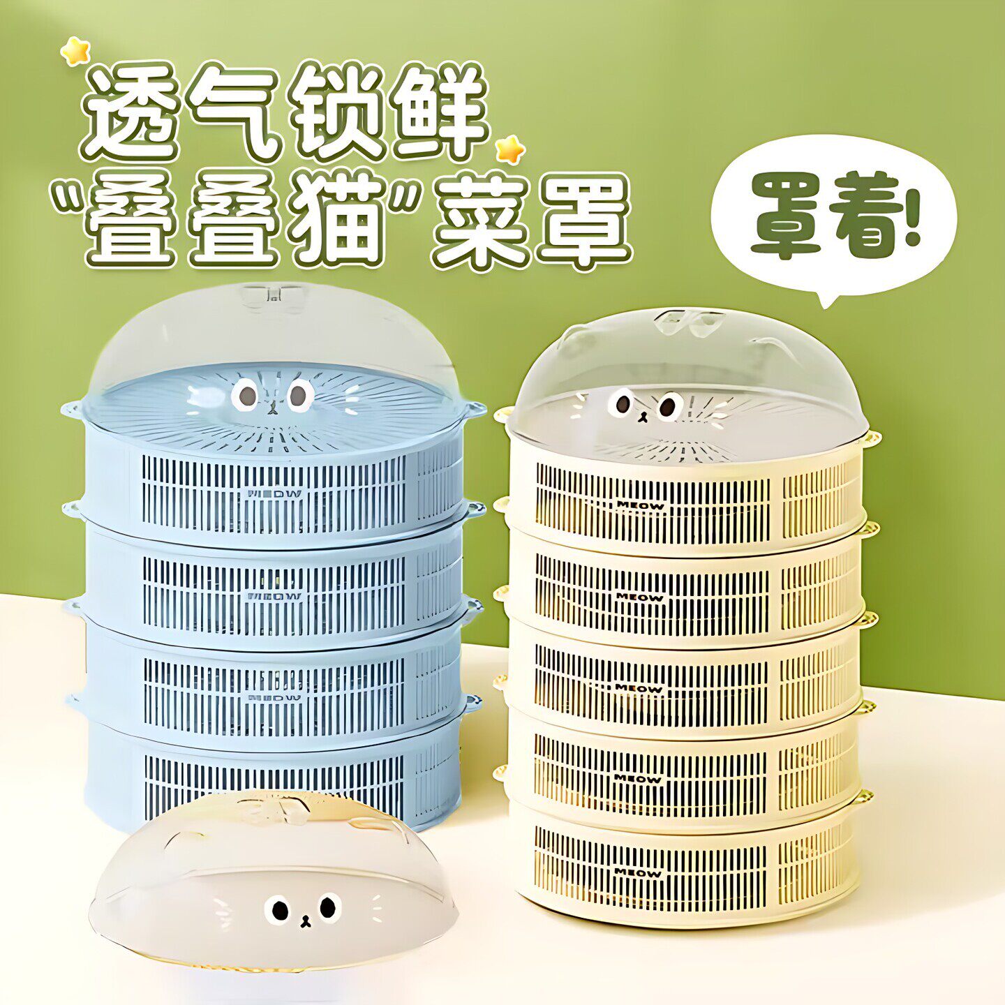 多层透气菜罩饭罩厨房餐桌剩菜盖食物罩镂空防尘防蝇虫家用收纳架