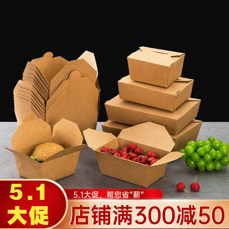 一次性牛皮纸餐盒外卖打包盒炒饭炸鸡寿司沙拉便当饭盒子带盖长形