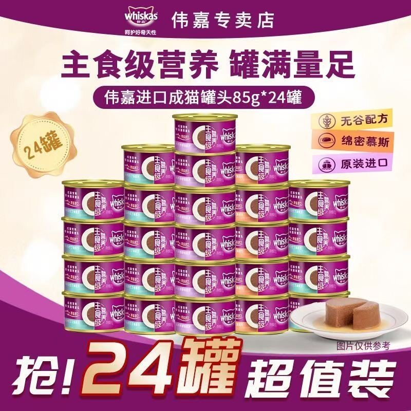 伟嘉猫罐头85g进口主食罐慕斯罐头鸡肉巴丁鱼/吞拿鱼/三文鱼猫咪