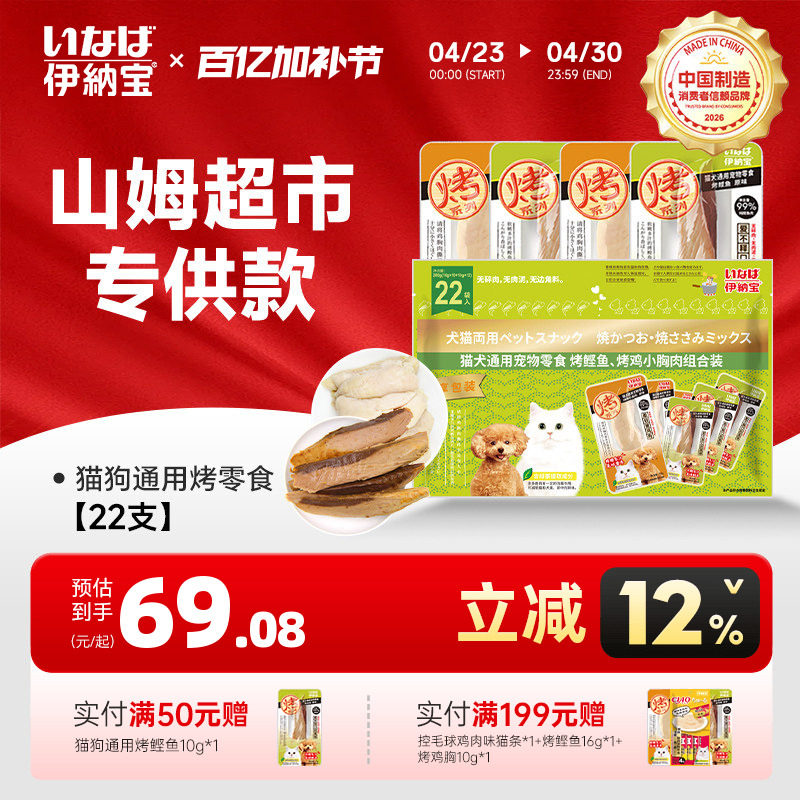 伊纳宝猫零食22支烤鸡小胸鲣鱼猫狗通用组合装0胶狗零食狗狗磨牙
