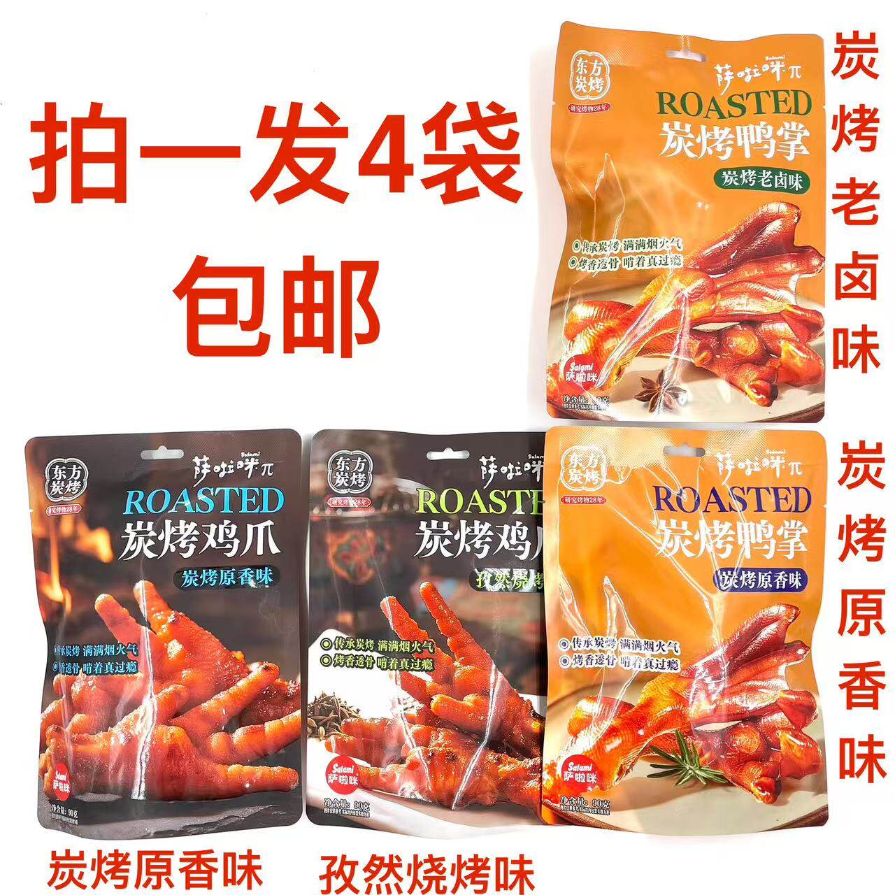 萨啦咪炭烤原香味孜然烧烤味鸡爪 炭烤老卤味原香味鸭掌90g发4袋M