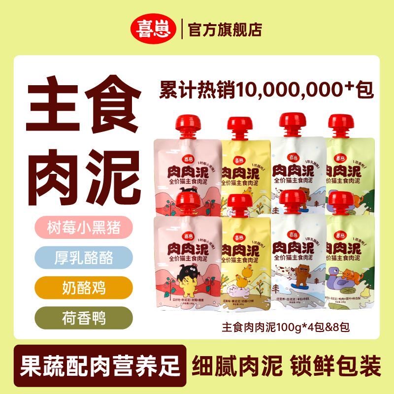 喜崽主食肉肉泥鸡肉猫罐头湿粮幼猫成猫主食餐包猫条吸吸酱营养