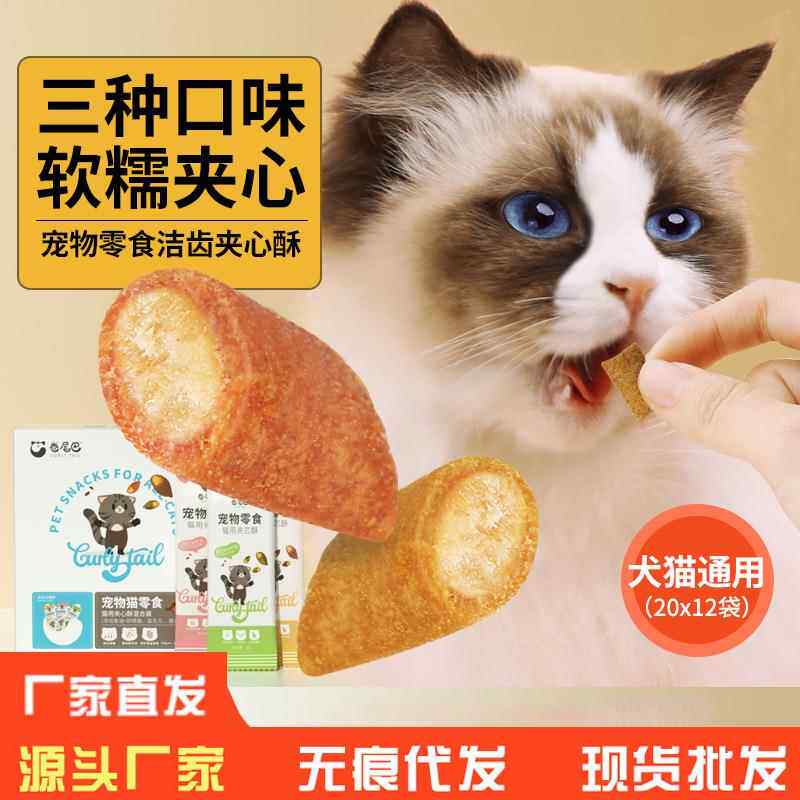 卷尾巴猫咪鸡肉宠物零食夹心饼干化毛磨牙20g*12洁齿营养猫软磷脂