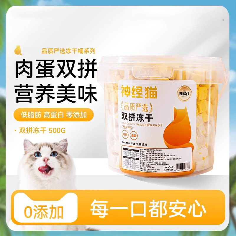 鸡肉蛋黄双拼冻干桶幼猫幼犬用鸡胸肉卵磷脂颗粒营养补充猫咪零食