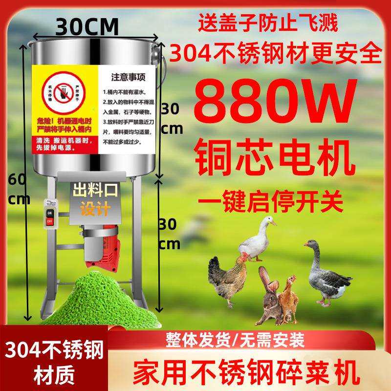 880W不锈钢新款碎菜机喂鸡多功能全套家用菜馅打草粉碎机喂鸡桶式