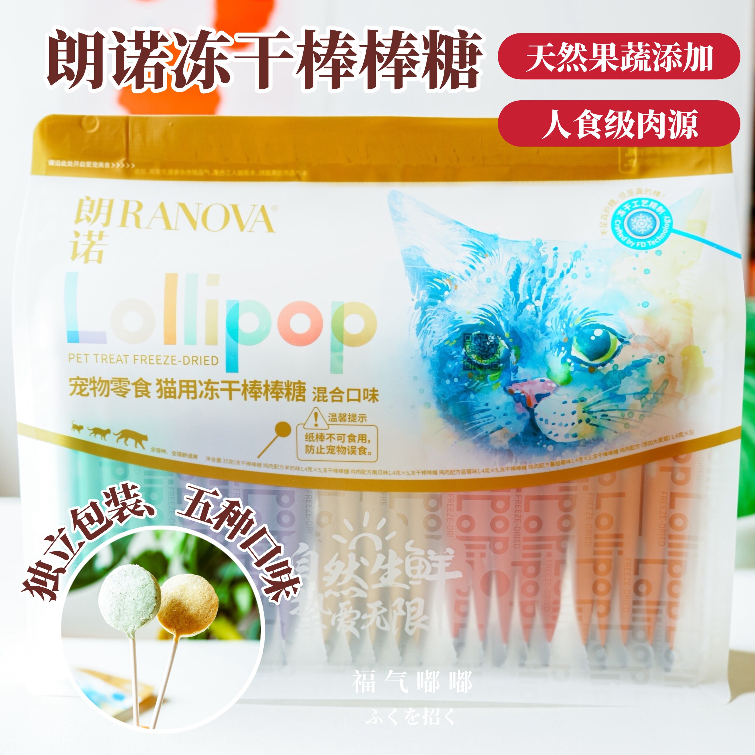 朗诺冻干鸡肉冻干棒棒糖猫咪零食营养鸡肉水果味高蛋白宠物磨牙棒