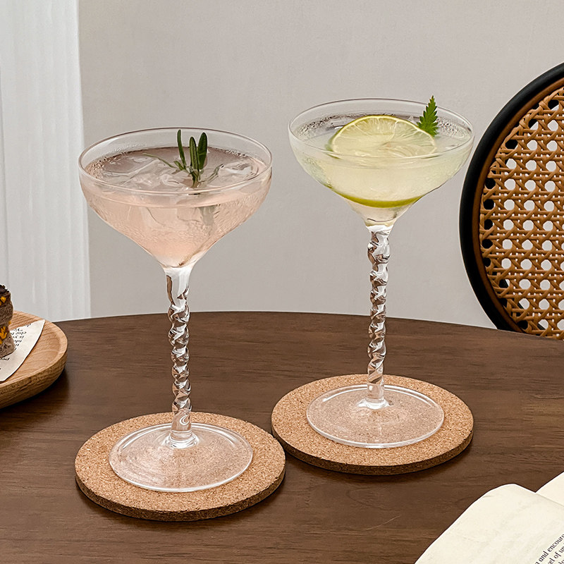 中古高脚杯小众设计螺旋水晶玻璃杯酒吧鸡尾酒杯高颜值创意甜酒杯