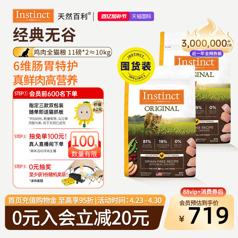 [官方旗舰店]Instinct天然百利猫粮进口无谷系列鸡肉猫粮5kg*2
