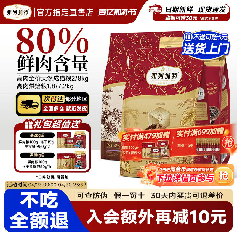 弗列加特猫粮乳鸽鸡鲜肉无谷烘焙粮营养全期80%鲜肉粮官方正品