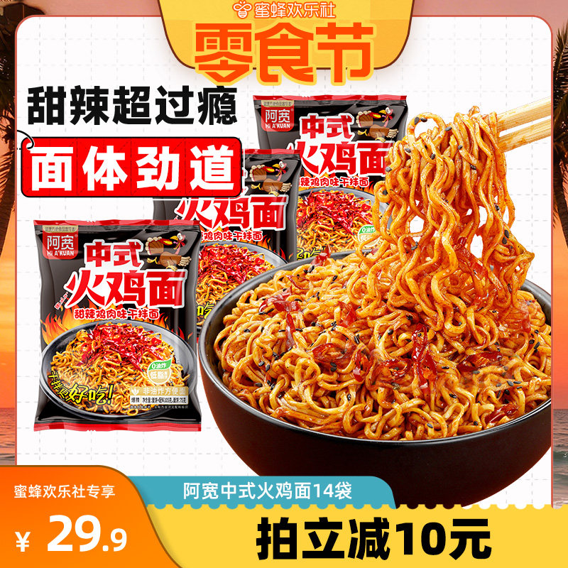 【欢乐零食节】阿宽火鸡面袋装甜辣拌面方便面速食泡面整箱批发