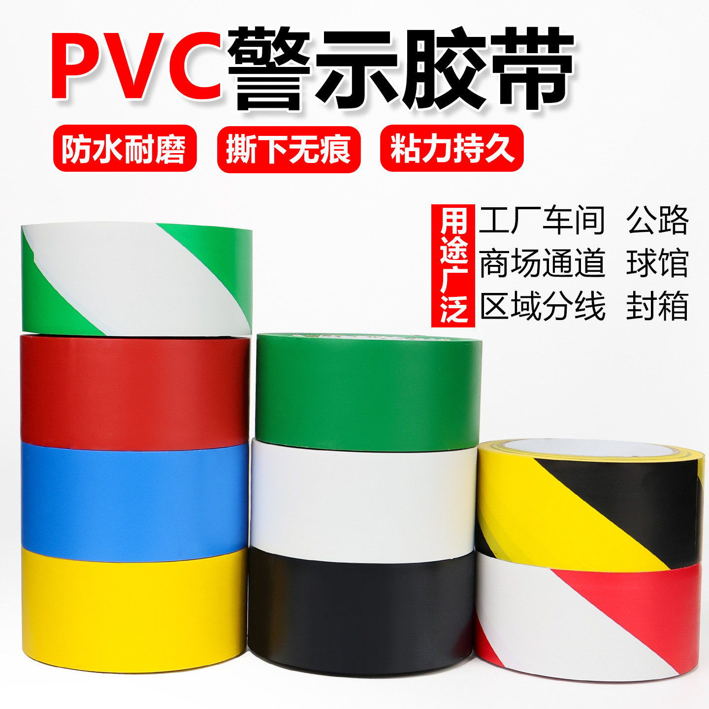 齐色标识PVC警示胶带安全线斑马线警戒带隔离带消防地线地标线地�