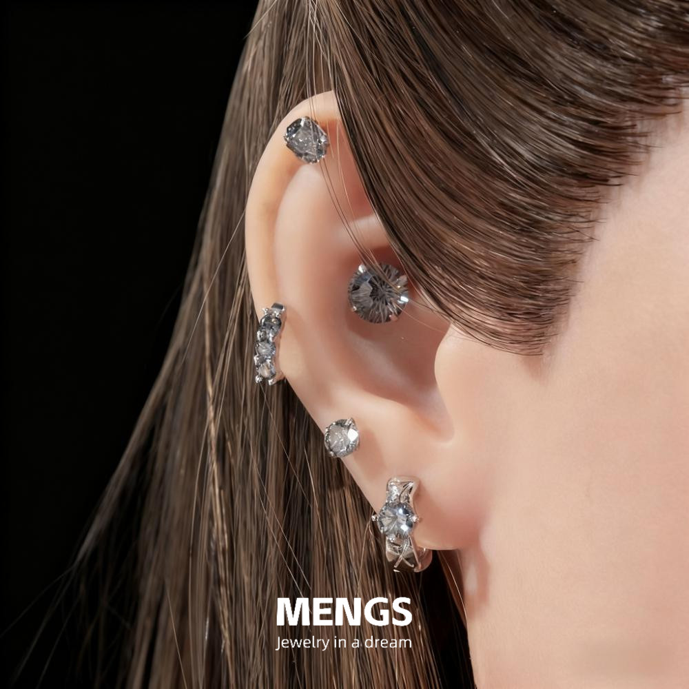 合金耳饰 【轻奢好物】耳钉男罗马字母黑贝圆形耳饰轻奢百搭耳环�