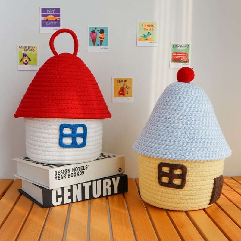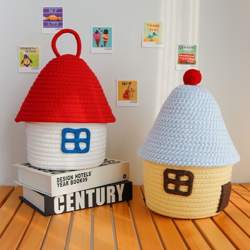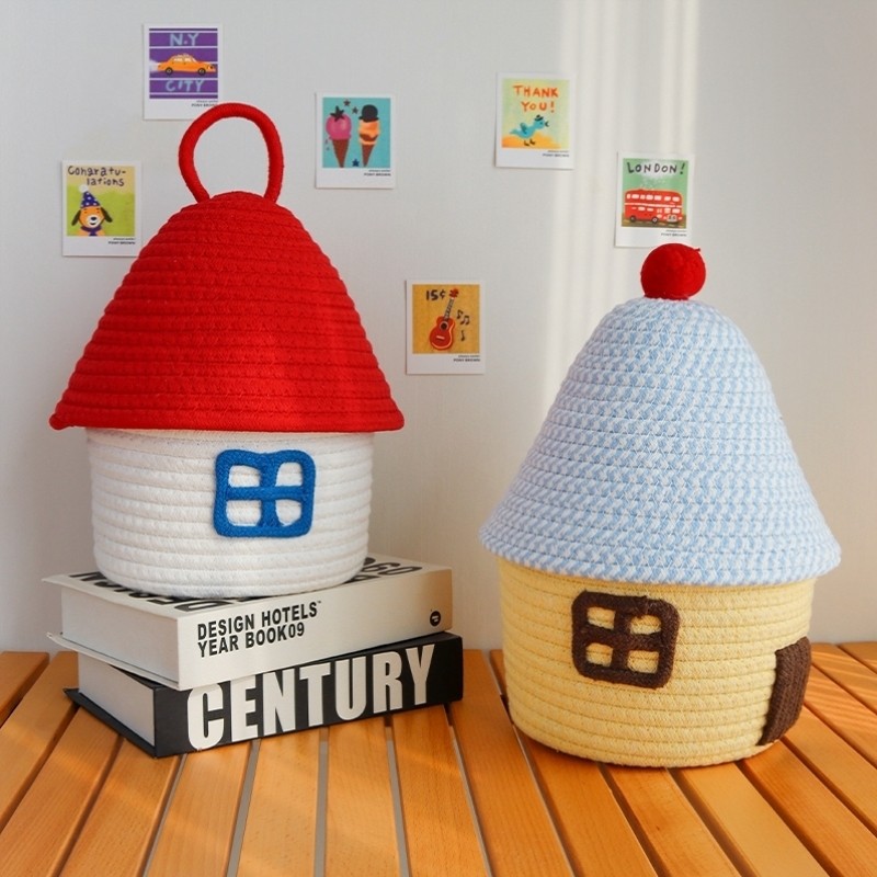 卡通桌面收纳盒零食��膜收纳筐整理盒家用带盖子棉线编织玩具储物