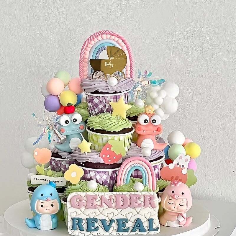 卡通可爱蛇宝宝叠叠纸杯蛋糕装饰儿童生日周岁苹果蛇摆件气球插件