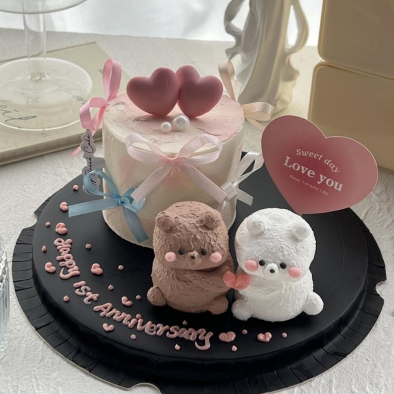 2.14情人节粉色爱心卡片蛋糕装饰插牌软胶爱心熊兔情侣纪念日摆件