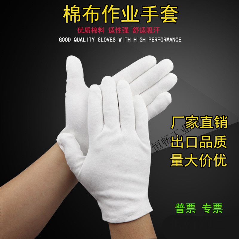 白色棉手套作业防汗礼仪品检棉薄汗布盘珠文玩手袜批发 中厚经济款独立包装