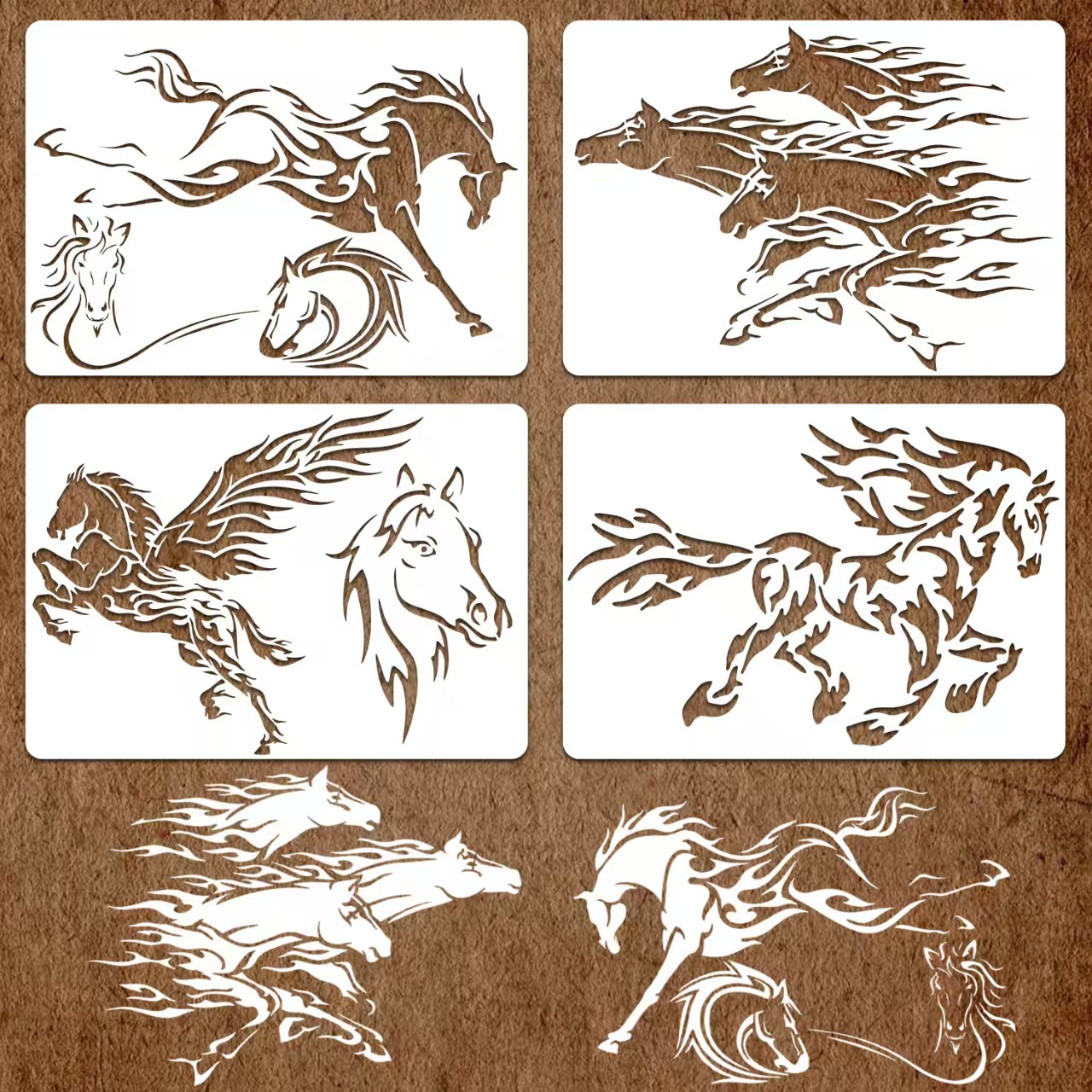A4四张款式骏马拓印喷绘镂空模板手工diy手绘漏印喷漆绘画设计
