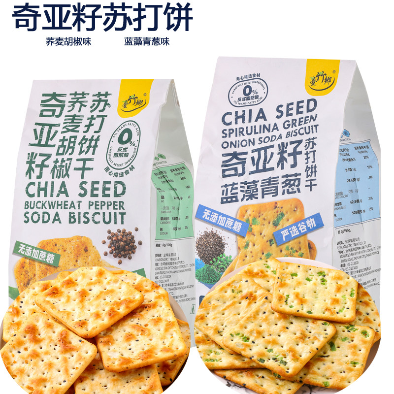 台竹乡奇亚籽蓝藻青葱荞麦胡椒苏打饼干240g小包咸味零食黑松露饼