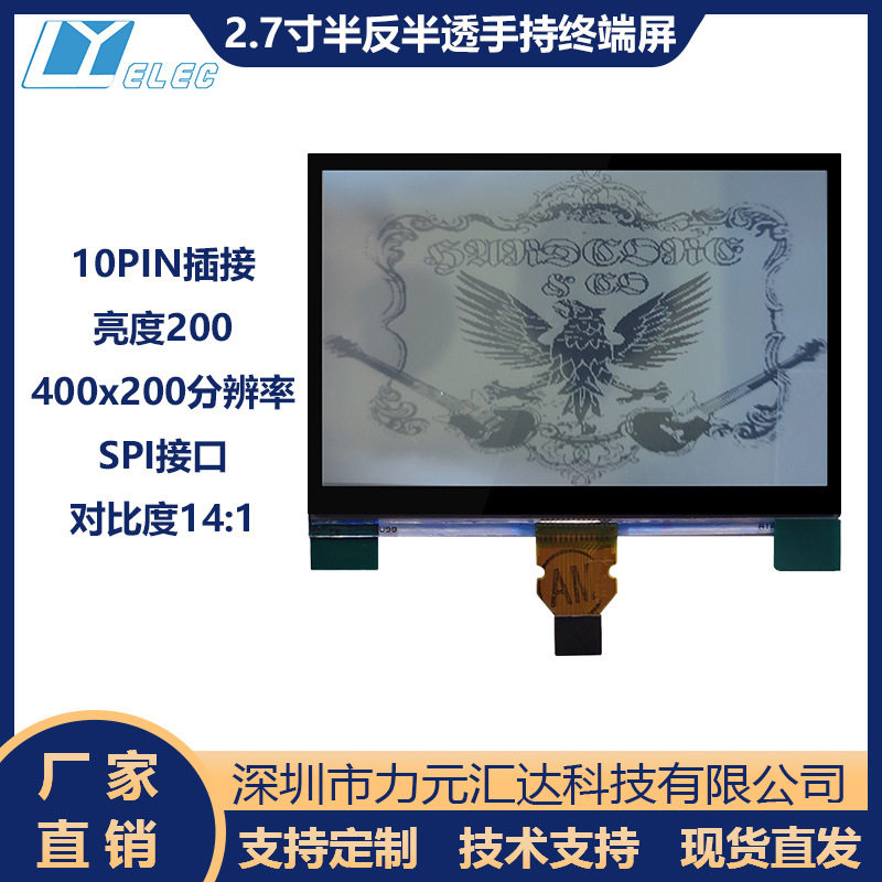 夏普2.7寸400x240单色半反半透屏LCD显示屏LS027B7DH01全视角
