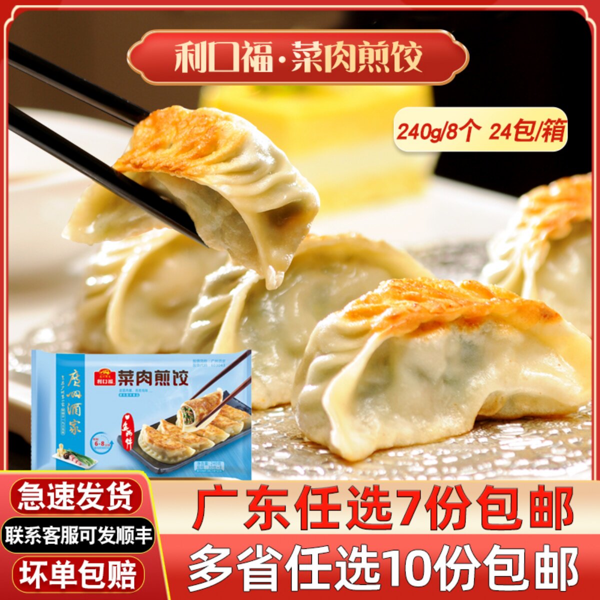 广州酒家利口福菜肉煎饺广式早茶点心煎饺240g/8只早餐广东煎饺子