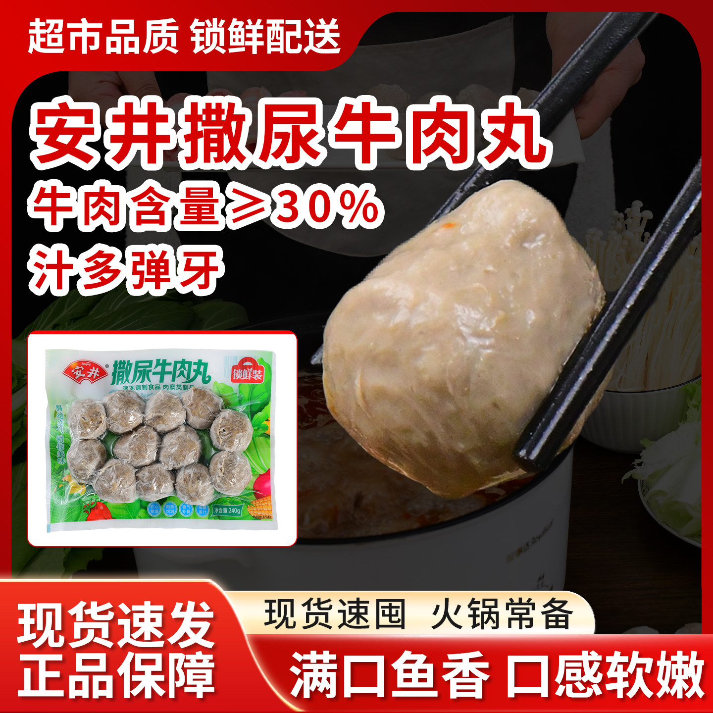 安井撒尿牛肉丸240g锁鲜装速冻火锅丸子关东煮匠心制造肉质饱满
