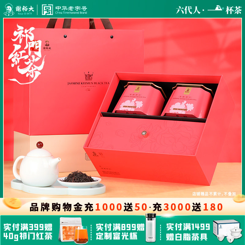 谢裕大祁门红茶祁红毛峰红茶叶红顶1000经典礼盒240g节日送礼