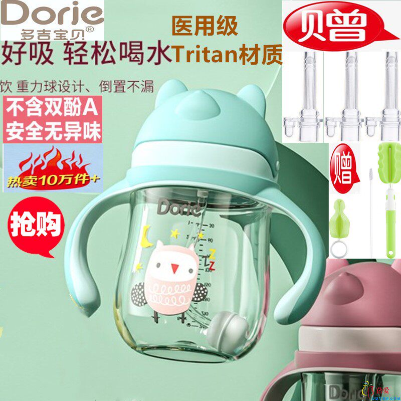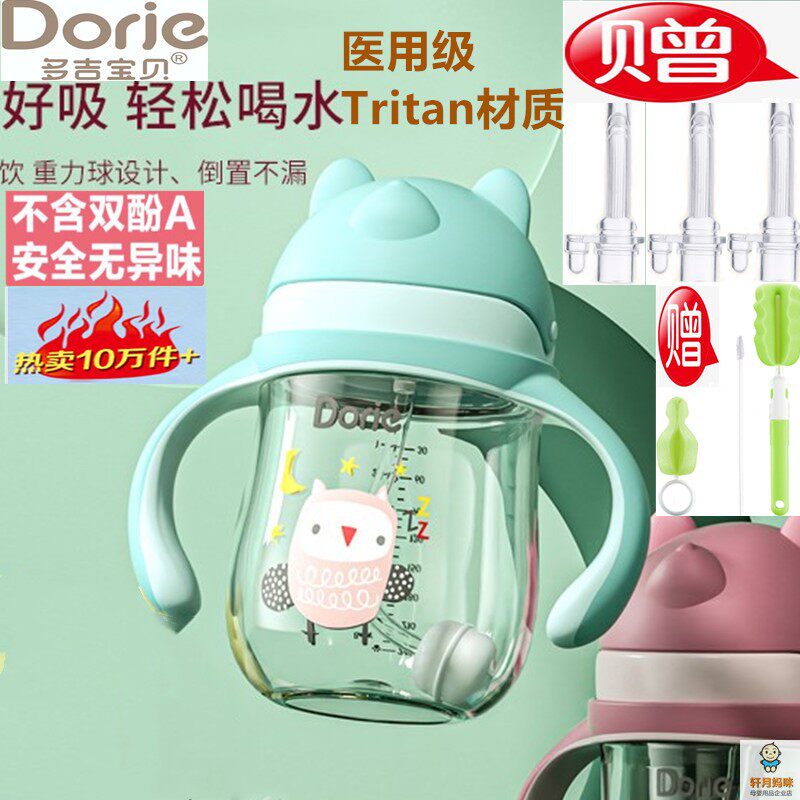 Dorje多吉宝贝吸管水杯Tritan材质喝奶喝水防摔防呛学饮杯240ml